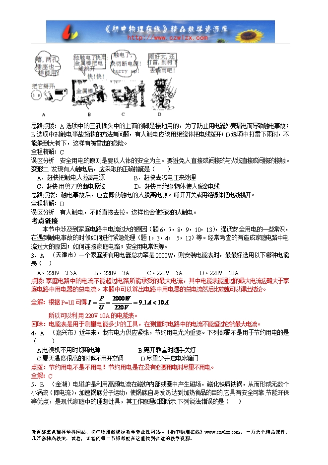 命题意图 这是安全用电的一些常识,以及遇到触电事故如何进行急救,提高联系实际的能力。