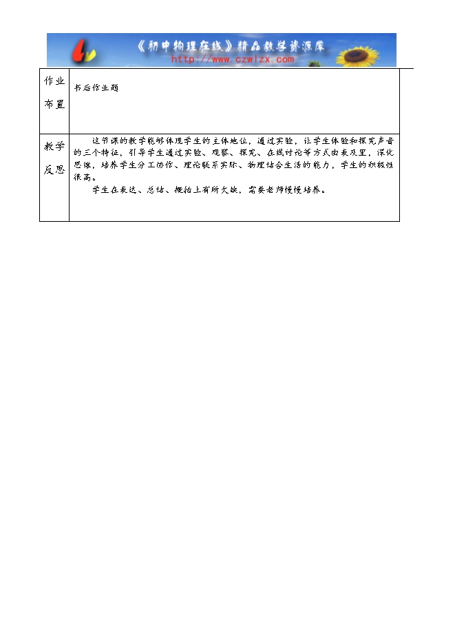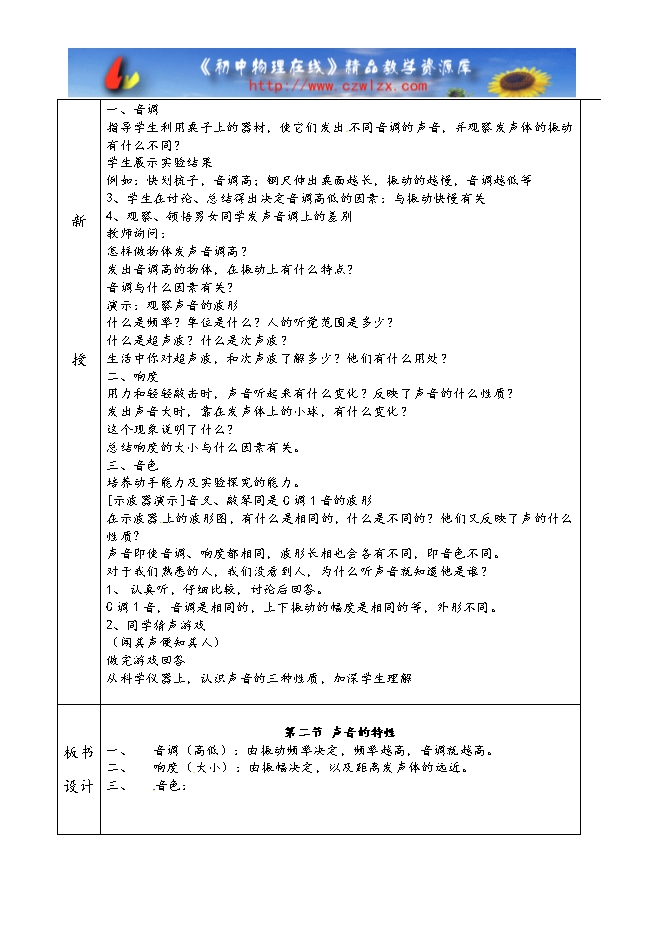 教师点评同学的歌,(谁的调子高、谁的声音大等)引出今天所学声音的特性。