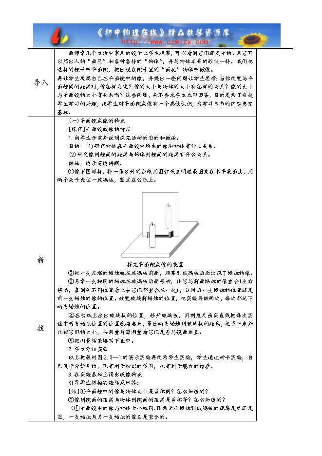 课 题 第四章光现象 第三节 探究平面镜成像特点 授课人 杨益