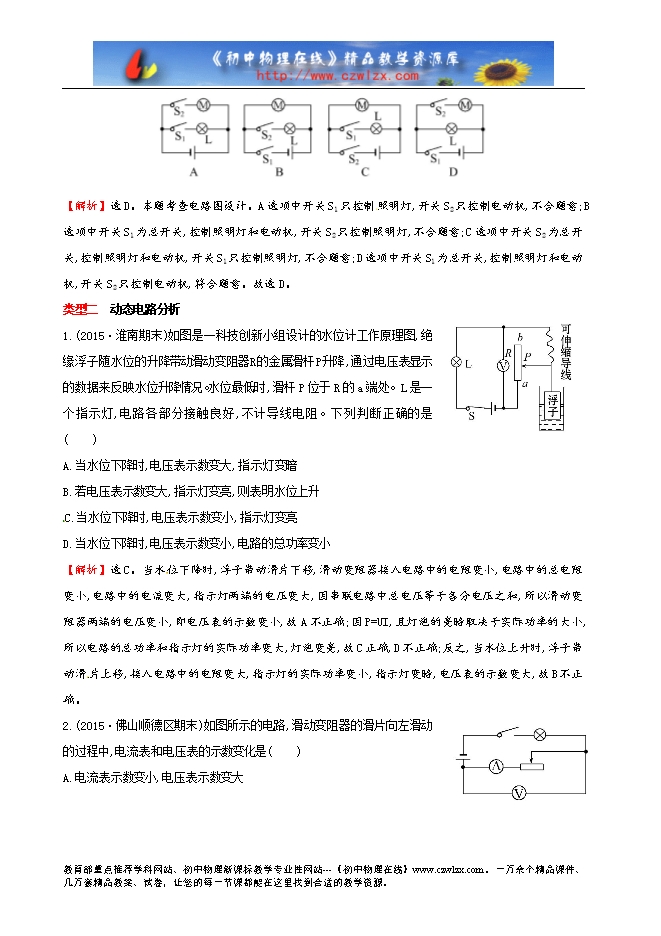 2016年中考热考题型练 :题型三 电路设计和动态电路
