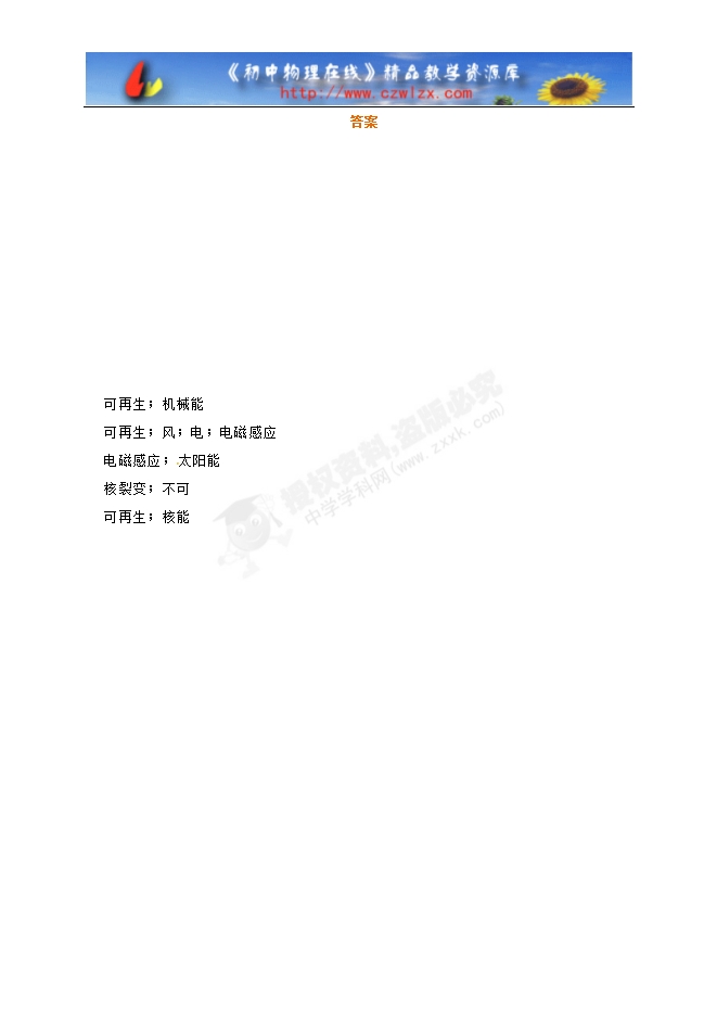 人教版九年级物理《22.4能源与可持续发展》同步练习及答案2