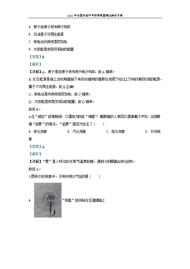 【解析】选B。本题考查物态变化的判断。暖湿气体中的水蒸气遇冷液化成小水珠,大量小水珠形成飞机尾部的痕迹。
