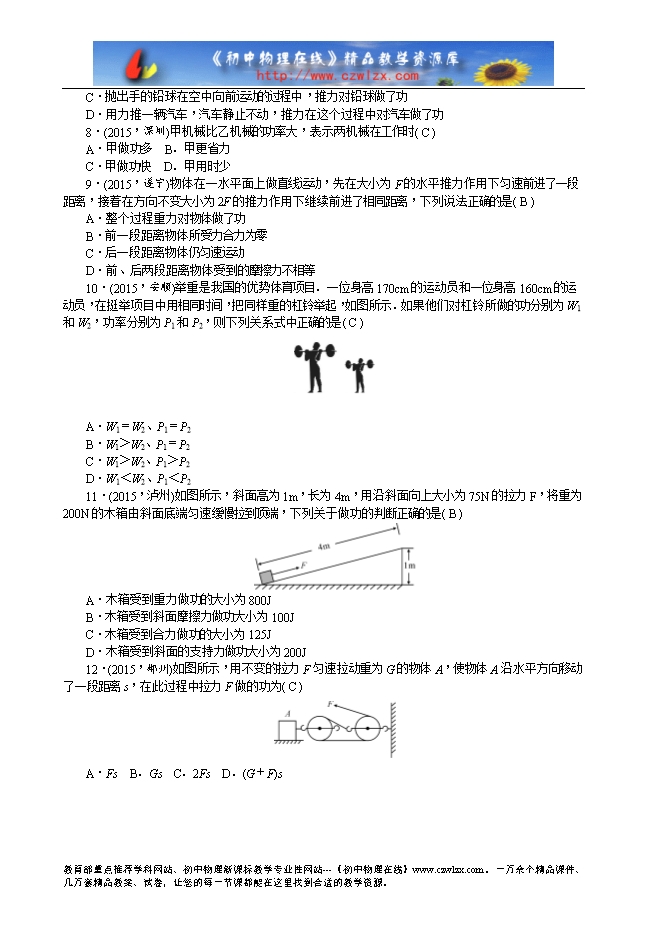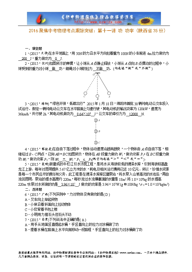 2016聚焦中考物理考点跟踪突破,功本站原创2016年03月22日/UploadFiles/nopic.gif