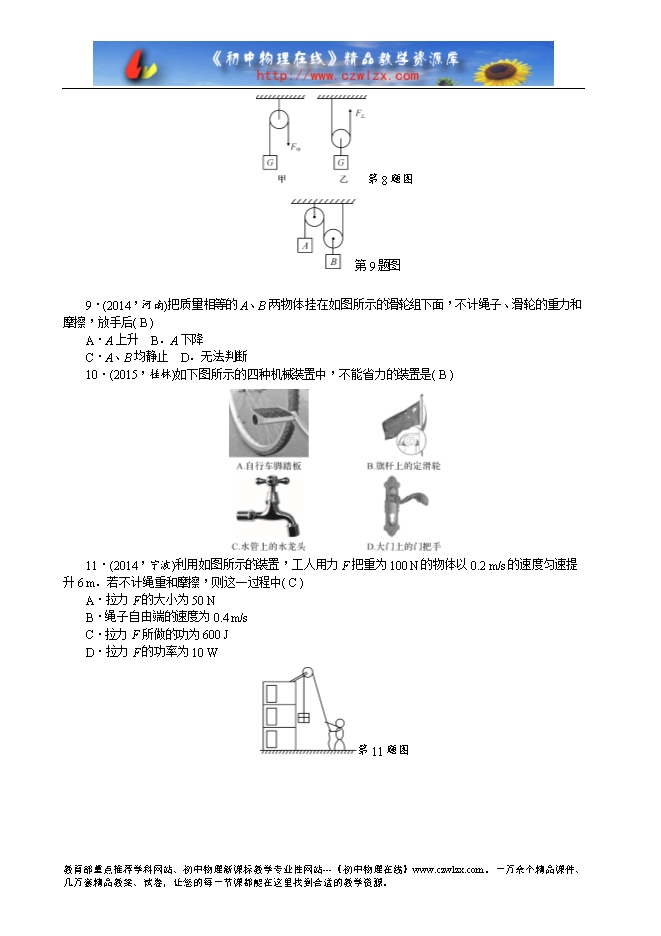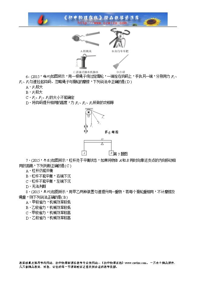 2.(2015,台州)使用简单机械可以给人们的生活带来便利.