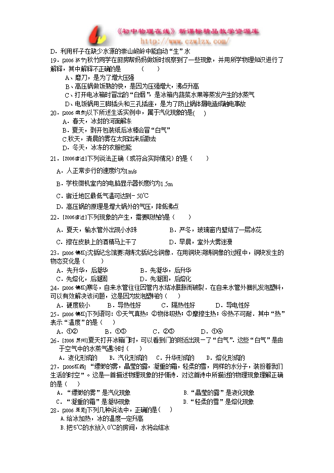 2006年中考试题汇编---热现象