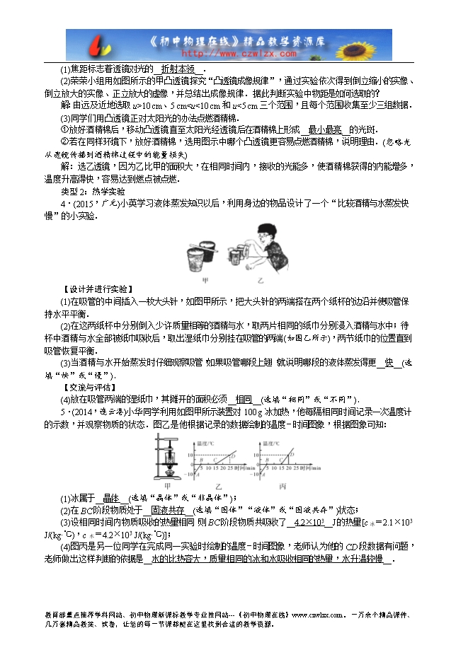 3.(2014,哈尔滨)透镜是重要的光学元件,分为凸透镜和凹透镜.