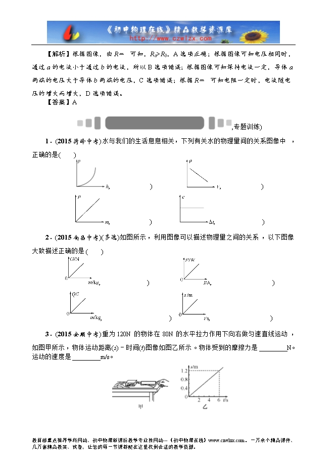 2016中考王中考命题重点专题专项突破:专题三 图像类型题(贵阳)