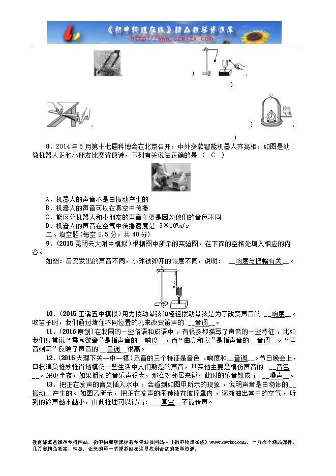 6.(2015武威改编)下列关于声音说法正确的是( D )