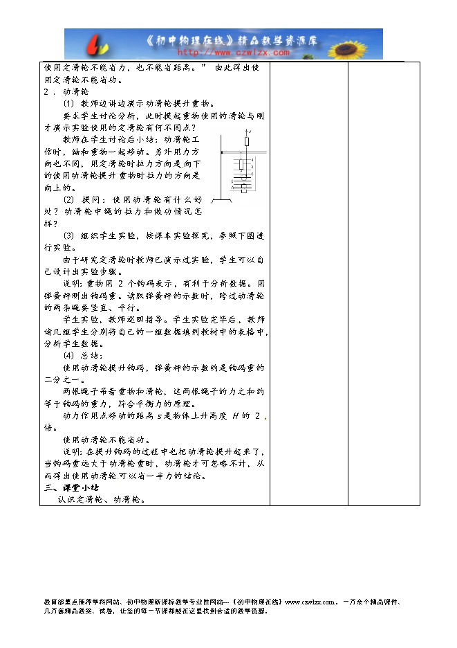 遂宁市大英县天保中学八年级下册教案:11.2滑轮(教科版)