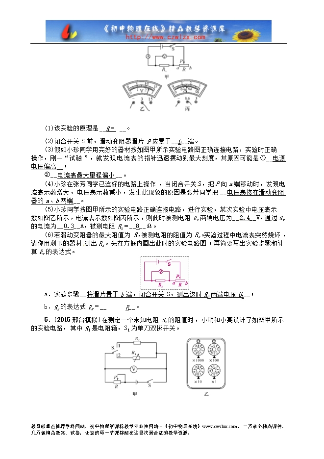 1.(2015太原中考)在“测量定值电阻阻值”的实验中: