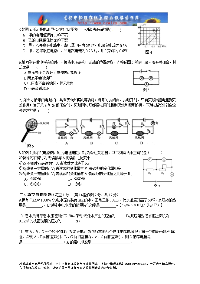 C.乙灯的灯丝细,电阻小 D.乙灯的灯 丝粗,电阻大
