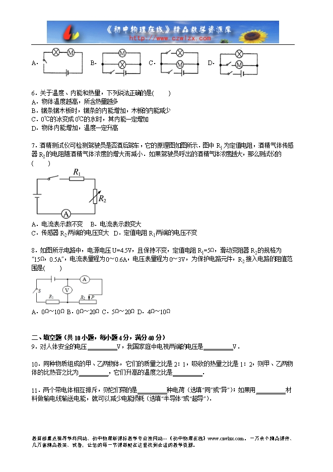 (3)根据U=IR可知,UAB>UBC;通过分析可知A正确.