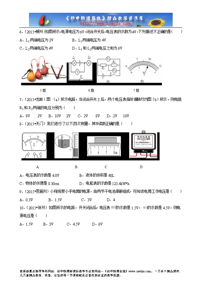 4.(2015?吉林)如图所示,能正确地测出小灯泡L1两端电压的电路是( )