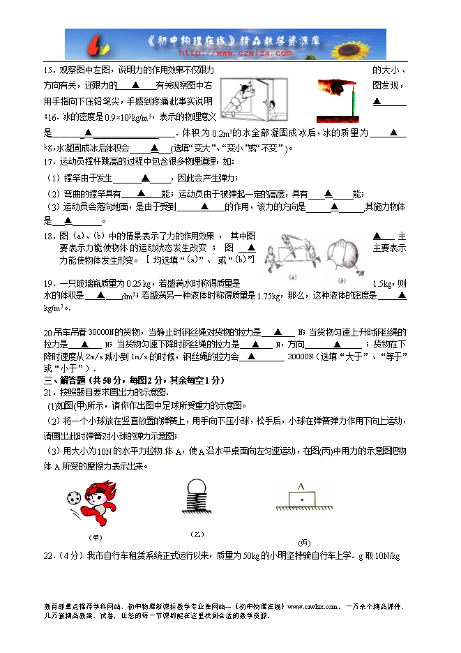 - 2251安徽省阜阳市2015-2016学年八年级下学期期中考试物理试题(解析版)