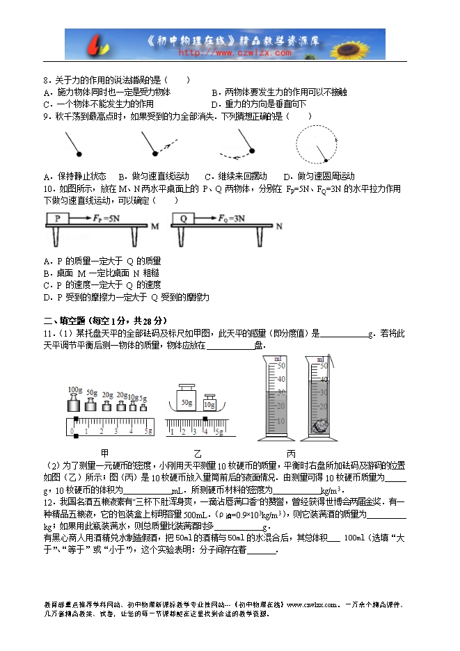 3.在地球上有一台准确的天平和一只准确的弹簧测力计,同被测物体一起搬到月球上去测物体的质量和重力,则( )