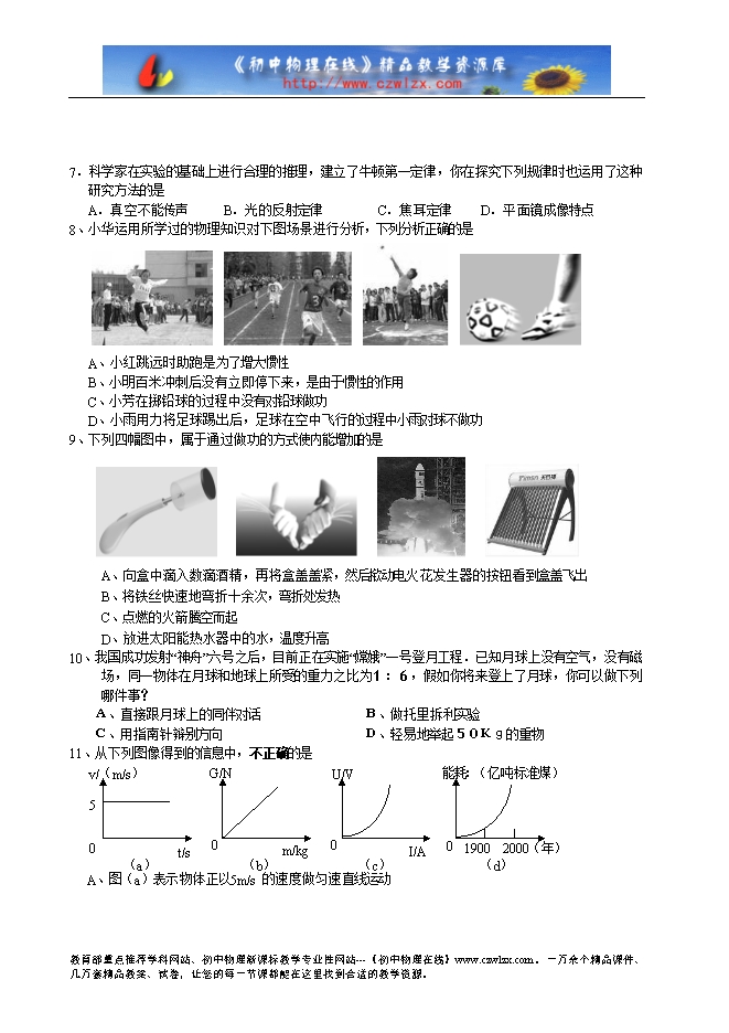 6、如下图所示,画中的人出现了错误的判断。以下四幅光路中,能正确说明产生这一现象的原因的是