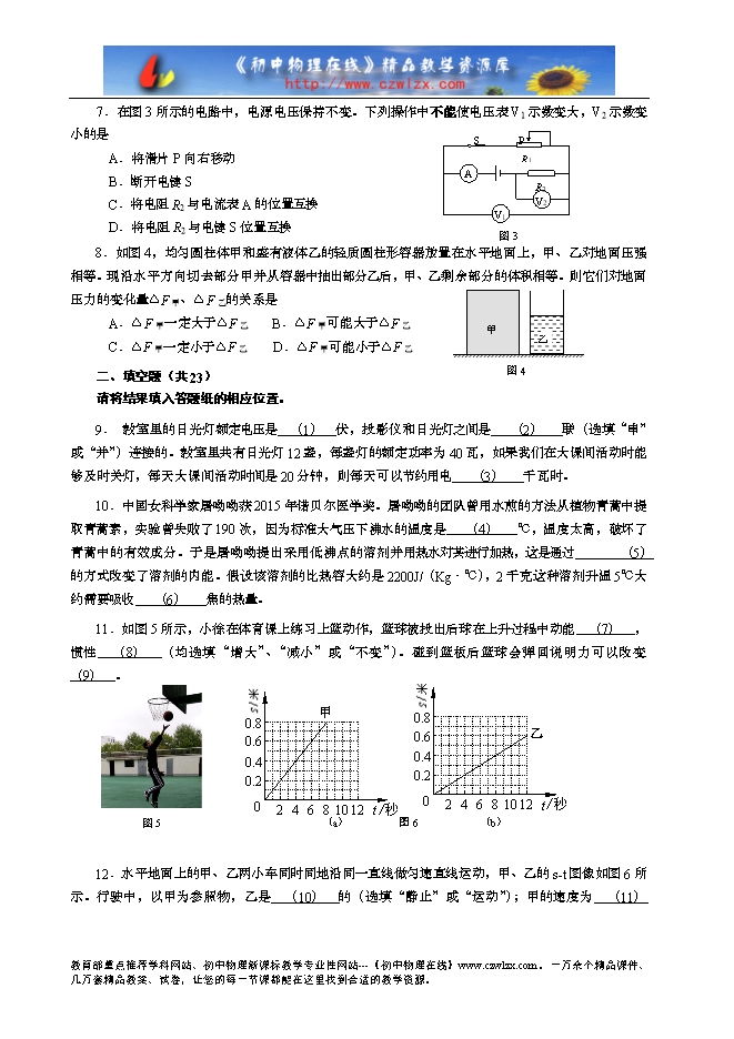 【内容简介】考生注意: 1.本试卷物理部分含五大题。