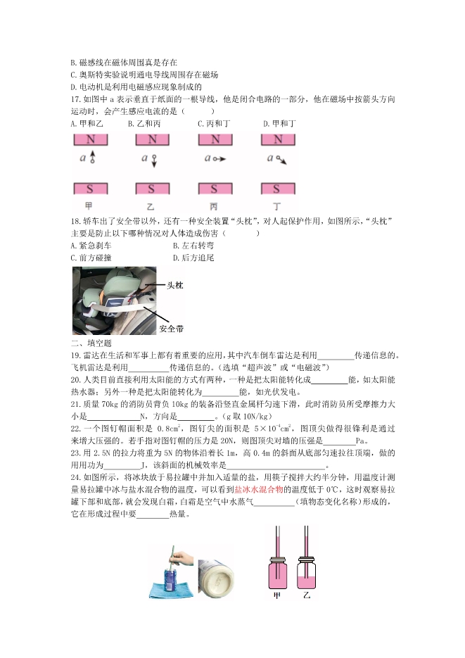 2016年湖北省宜昌市初中毕业生学业考试物理试题(无答案,pdf版)