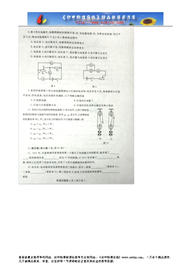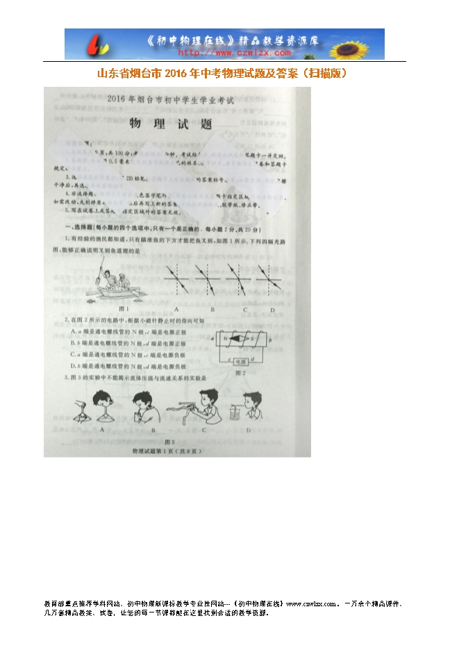 【内容简介】山东省烟台市2016年中考物理试题及答案(扫描版)