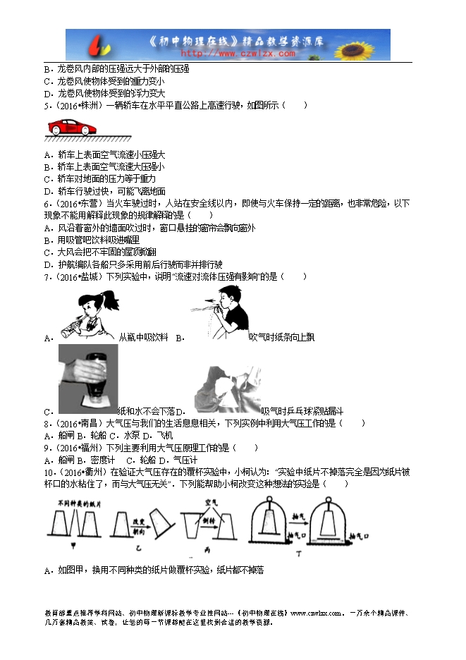 1.(2016?烟台)图中的实验中不能揭示流体压强与流速关系的实验是( )