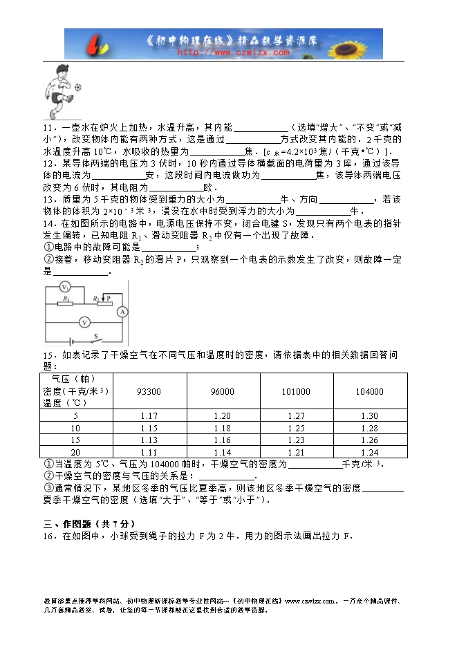 上海市2016年中考物理试题(word解析版)