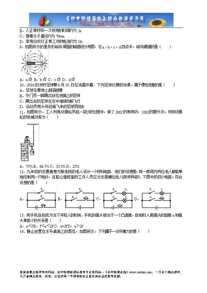 【内容简介】福建省三明市2016年中考物理试题(word解析版)