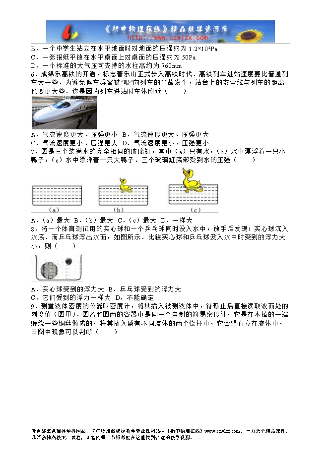 天津市和平区2015-2016学年八年级下学期期中考试物理试题(解析版)