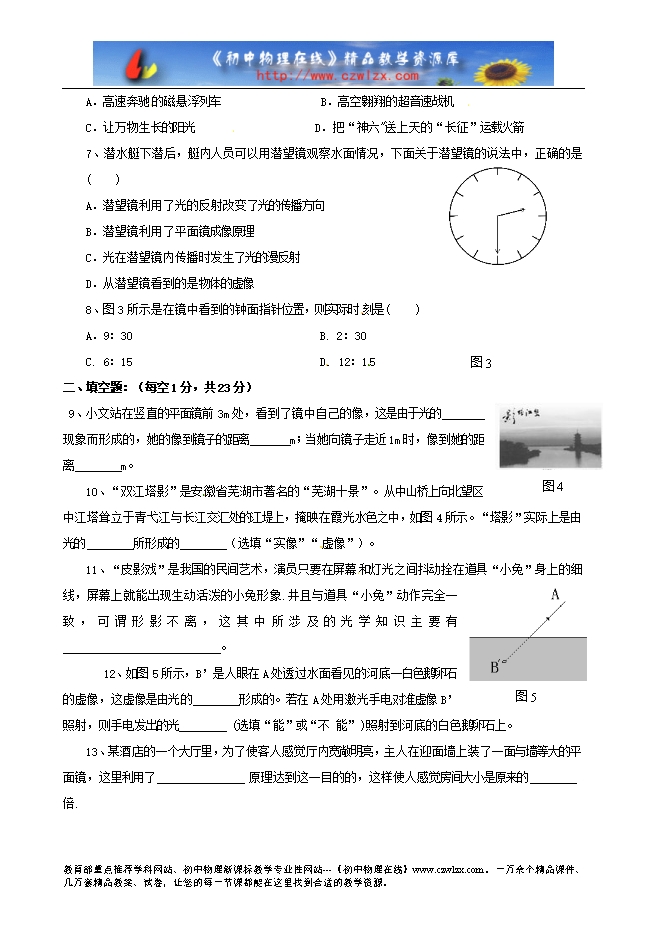 7、潜水艇下潜后,艇内人员可以用潜望镜观察水面情况,下面关于潜望镜的说法中,正确的是( )