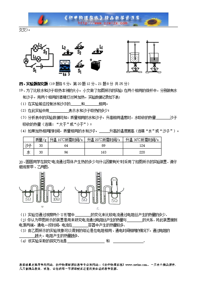 7、甲、乙两个定值电阻,甲标有“16Ω 1.5A”、乙标有 “22Ω 0.5A”。现把它们串联起来,为保证电阻工作安全,则该串联电路两端允许加的最大电压为 V。