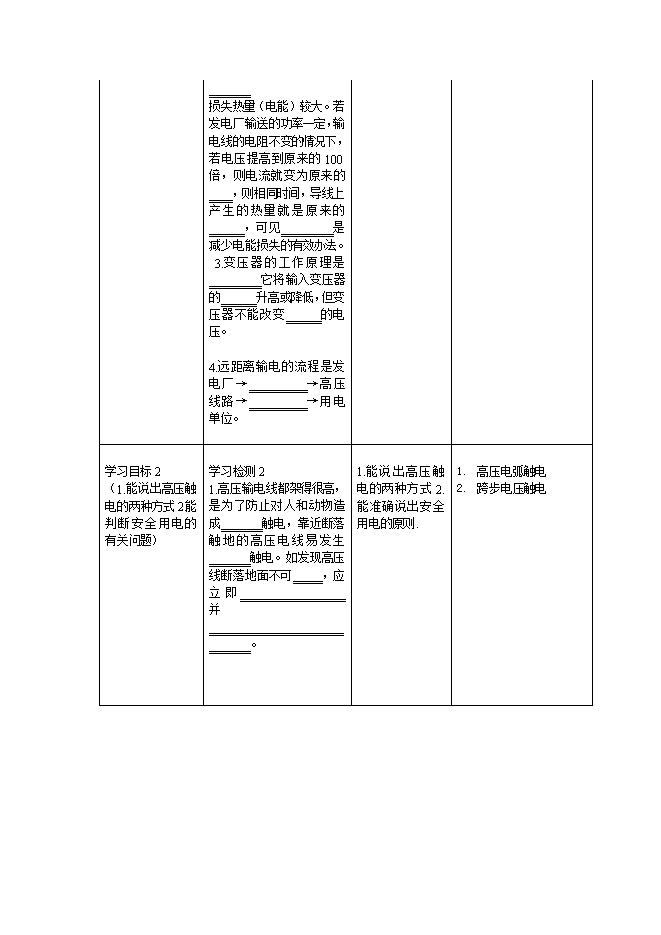 本节内容课标要求:了解高压输电的原因及远距离输电的过程;知道高压触电的两种方式及防护措施。