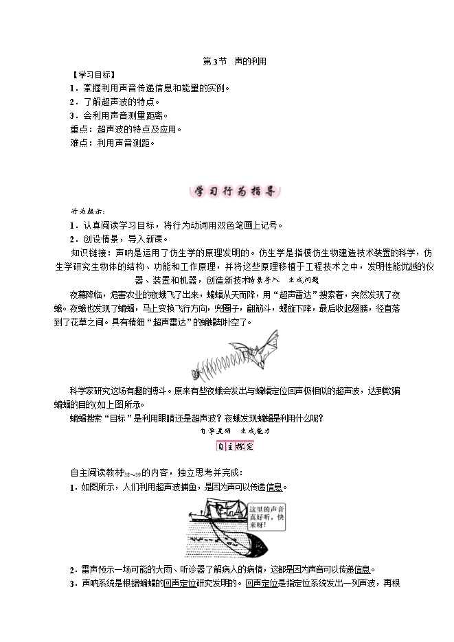 【名师测控】2016年秋人教版八年级物理上册:2.3声的利用 学案