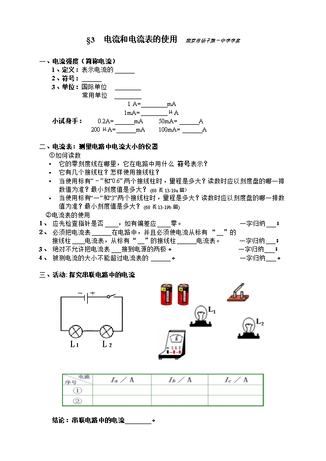 1.知道质量的初步概念及其单位和换算。