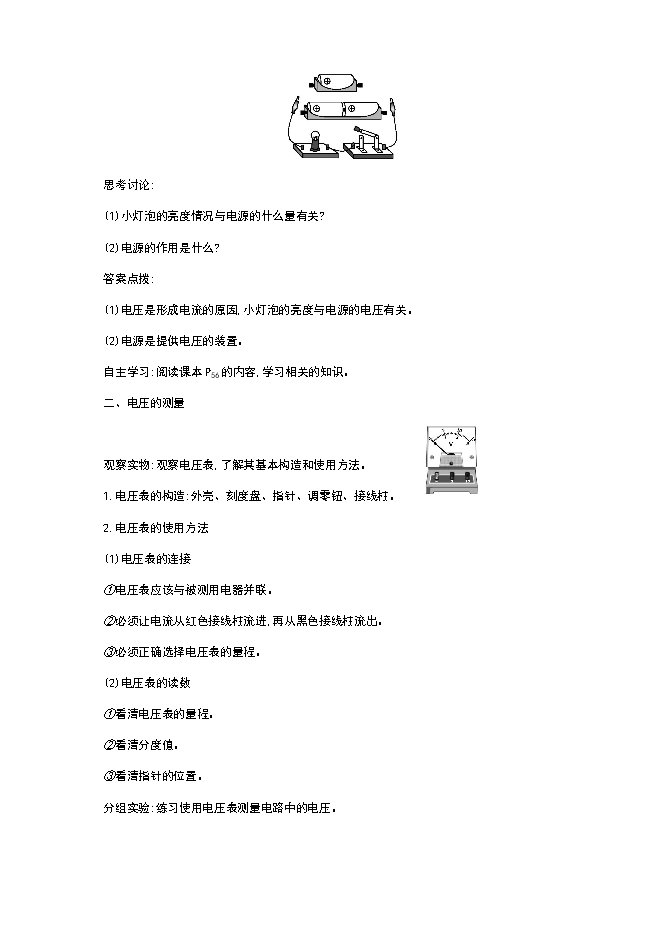 4.练习使用电压表,了解电压表的连接、读数方法。