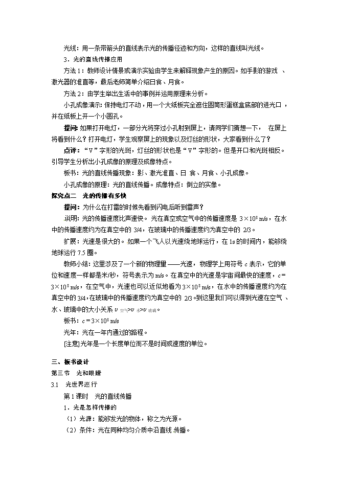 教学重点:光的直线传播。