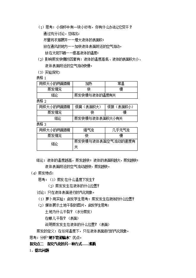 教学重点:观察水的沸腾的实验,认识液体沸腾的特点。