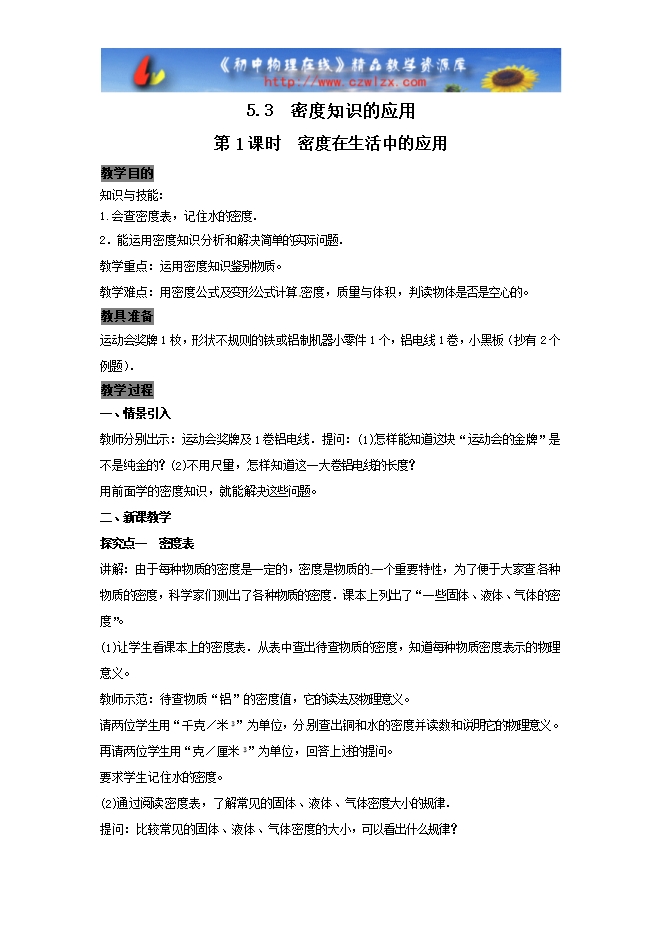 【内容简介】第1课时 密度在生活中的应用