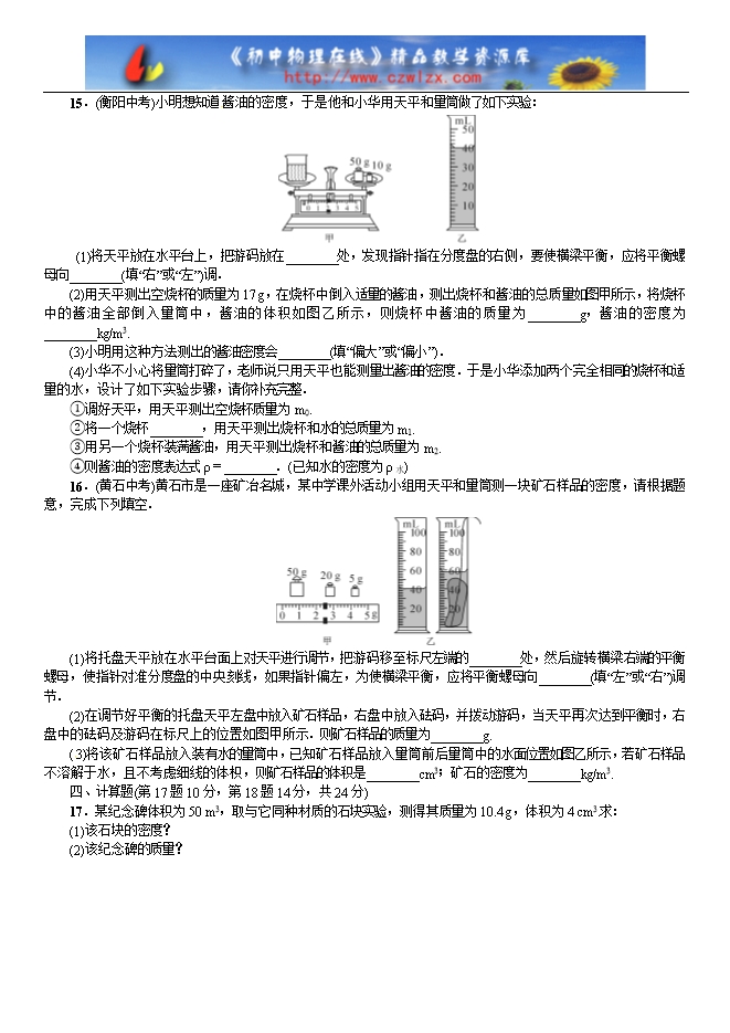 【名校课堂】2016-2017学年八年级物理同步练习:第五章 质量与密度(沪科版单元测试)