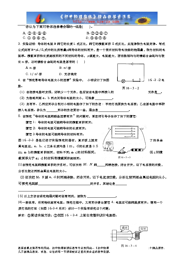 天津市2017届九年级全册物理同步练习:《16.3电阻》(AB组,附答案,新人教版)