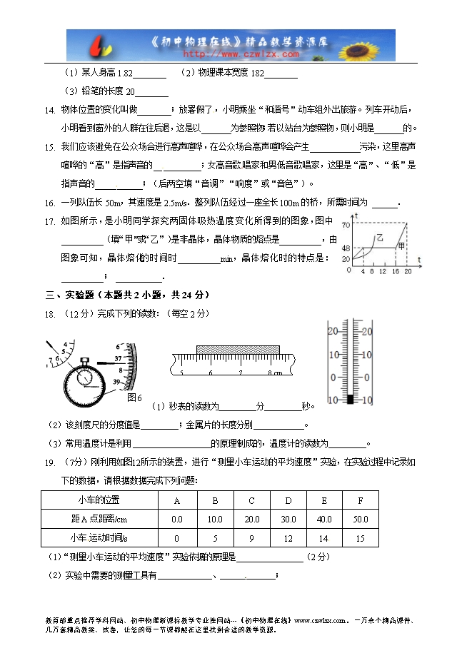 - 1147吉林省名校调研卷系列(省命题A)2019-2020学年 八年级上学期期中考试物理试题及答案
