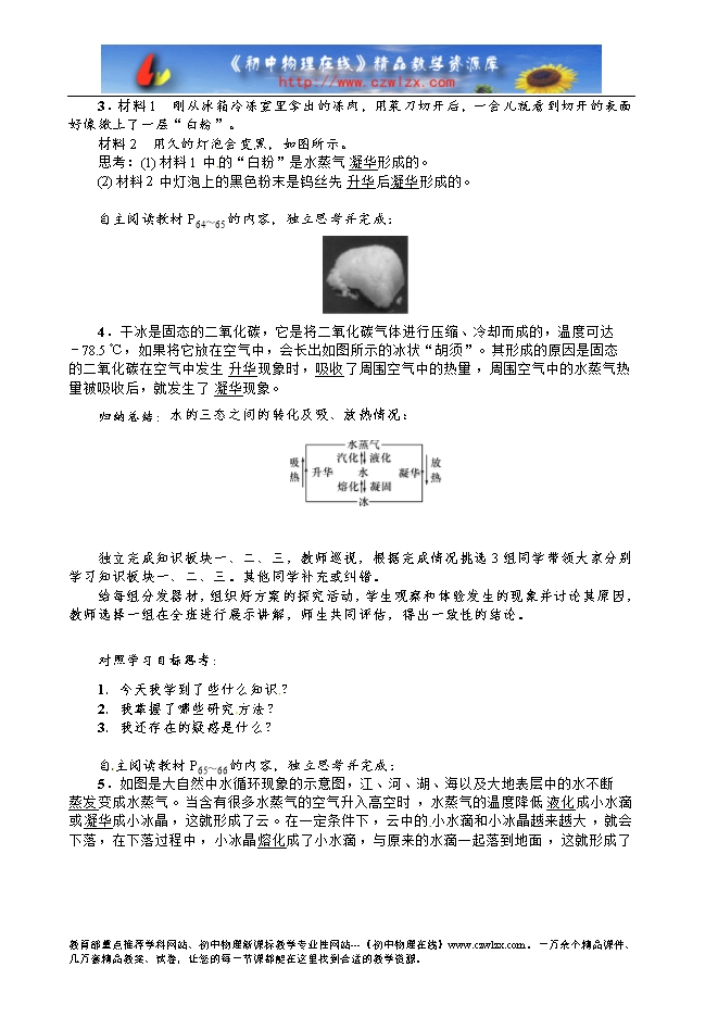 1.知道升华的概念以及升华吸热。