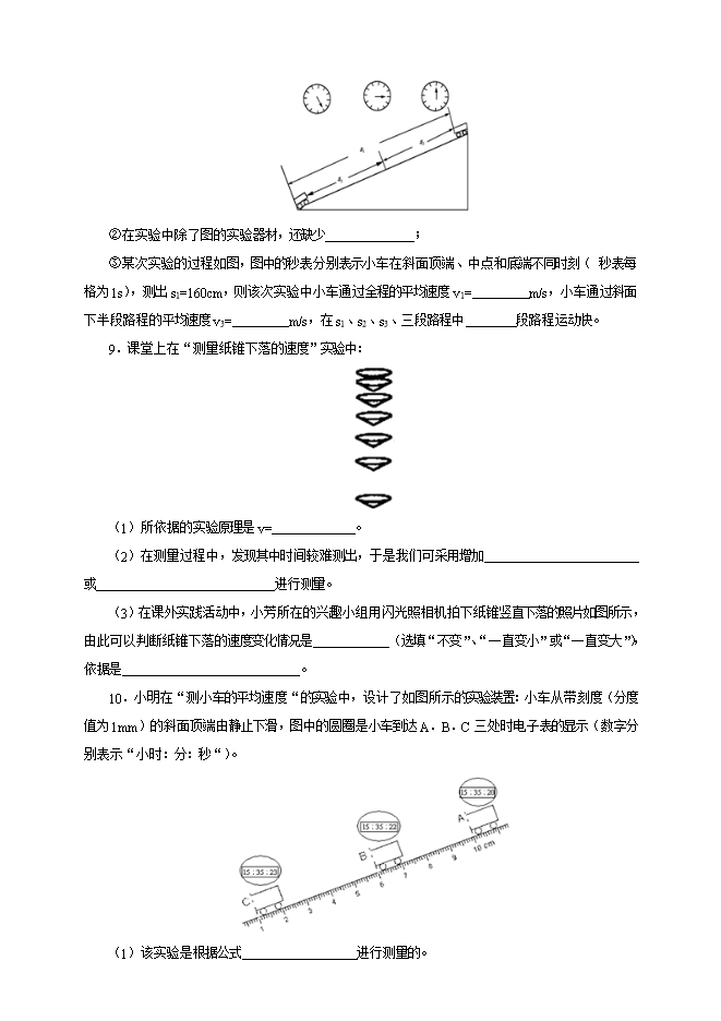 2.如图所示,是某同学在测小车的平均速度,小车在AB、BC和AC段的平均速度分别是VAB、VBC和VAC,由图可知( )