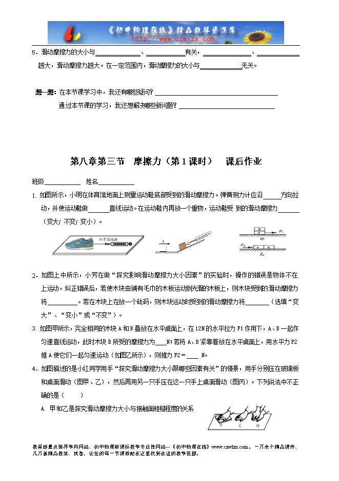 1.活动8.5 探究影响滑动摩擦力大小的因素