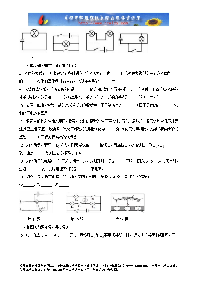- 1308广东省南雄市第二中学九年级上学期期末物理试题(人教版物理,附答案)
