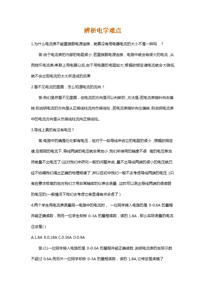 【内容简介】1.为什么电流表不能直接跟电源连接,就算没有用电器电流的大小不是一样吗 ?