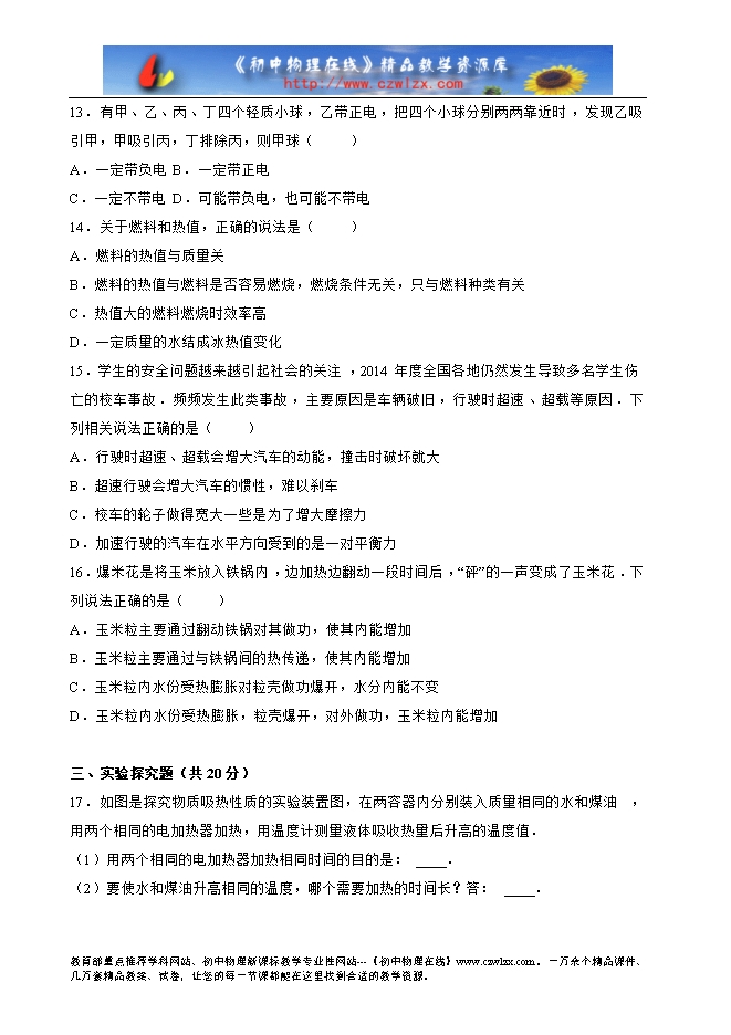 2.有甲、乙两物体,质量之比m甲:m乙之比为2:3,比热容c甲:c乙之比为2:1.如果它们放出相同的热量,则它们降低温度之比为 3:4 .