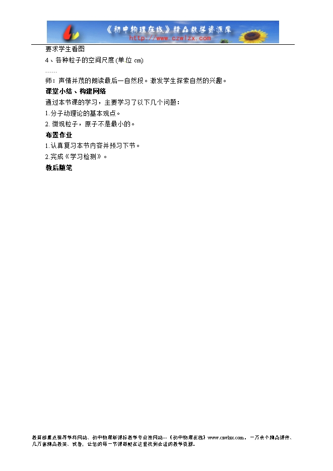 『教学难点』学生对微观世界“小的概念的建立和探索微观世界的科学方法的形成过程。”