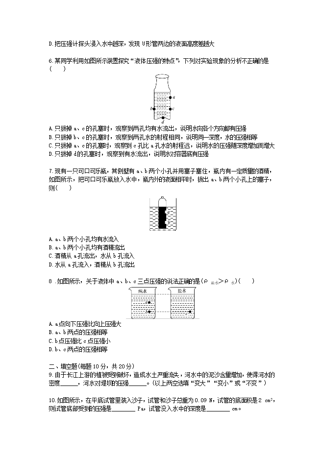 八年级下册物理-综合训练-第9章 压强(配人教新课标)