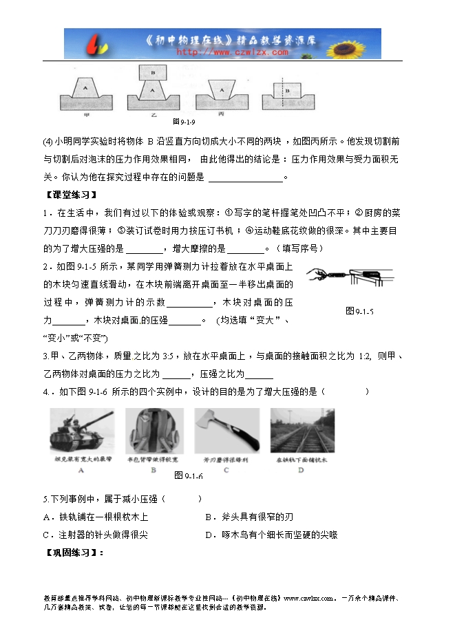 (1)知道压强的概念及单位