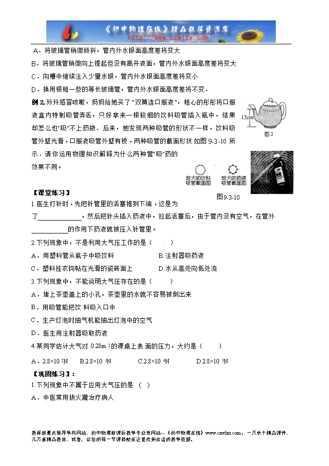 (2)通过演示,培养学生的观察能力,使学生理解大气压