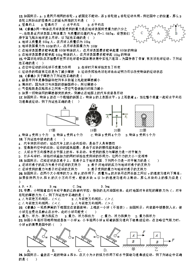 D.甲队受到地面的摩擦力大于乙队受到地面的摩擦力